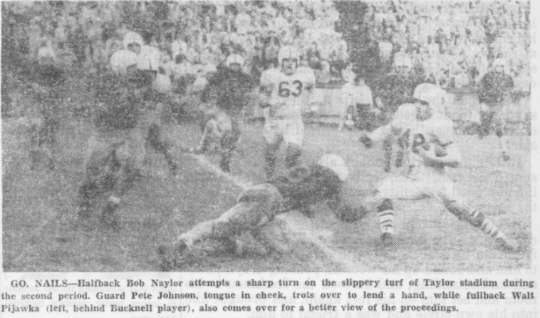 “Scoring three times and passing for a fourth touchdown,” The Brown and White said in a recap in 1955, “QB Dan Nolan led the Lehigh Packers [sic] to a 27-20 triumph over the Bucknell Bisons in front of 6,500 Parents Day fans in Taylor Stadium Saturday.”