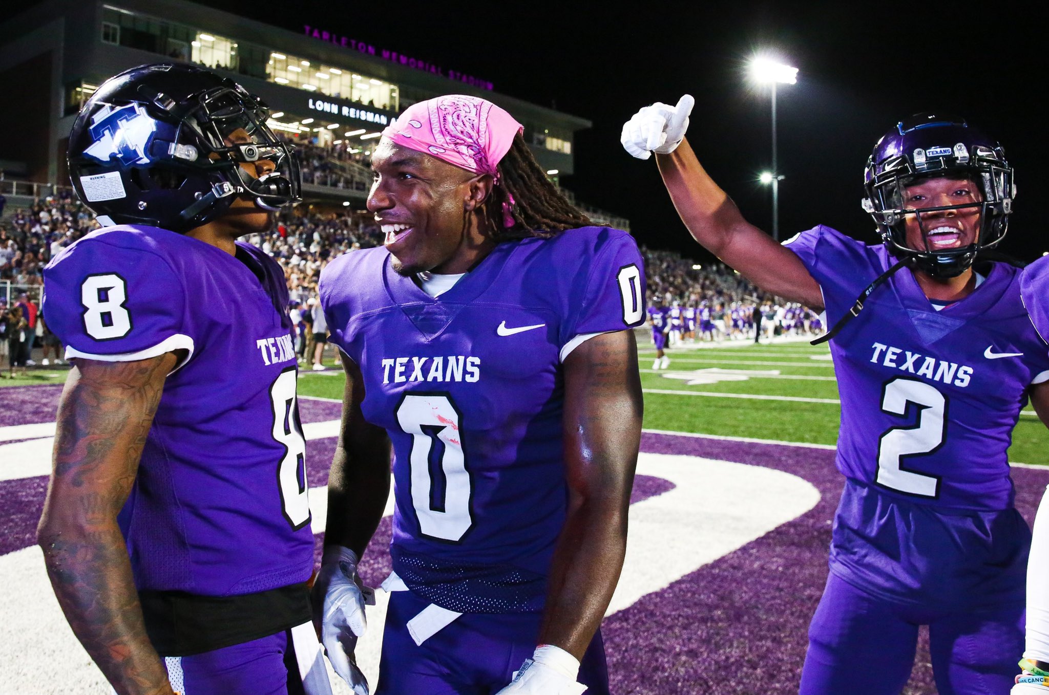Tarleton State University set a new school attendance record, hosting 16,216 fans inside Memorial Stadium for the Texans’ 17-14 win over Midwestern State in their homecoming game last Saturday. Texans tight end Max Maxfield caught both of Tarleton’s touchdowns from quarterback Steven Duncan, and defensive back Devin Hafford added two interceptions to his NCAA Division I-leading takeaway numbers, including the game-sealer with three seconds remaining to put Memorial Stadium in a frenzy.